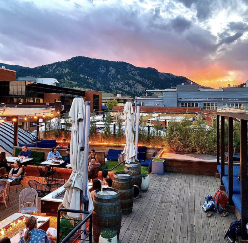 I have time to kill before dinner, so I stop in Rosetta Hall, a perfect hang-out spot with a dining hall and multiple bars. From Chinese to Mediterranean, Rosetta offers a diverse range of flavors. I head to the rooftop for a drink with a clear view of the Flatirons. I get the “Mora Mojito,” which consisted of cihuatan rum, blackberry, lime, and mint. I have a peaceful time, sipping my cocktail while admiring the lovely mountains Boulder provides.