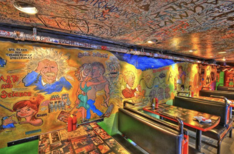 I work up quite the appetite on my hike, so I figure I’ll stop by the world-famous restaurant, The Sink, which has marked its territory in Boulder for over 100 years. Being a two-minute walk from the edge of CU Boulder’s campus, this is a popular spot amongst students and locals. The Sink holds cute traditions like offering students free burritos the morning of their graduation and having them sign the ceilings to leave their mark in Boulder forever. Additionally, The Sink is no stranger to celebrities. Guy Feri visited The Sink when he filmed an episode of Diners, Drive-Ins, and Dives. Feri even reunited with The Sink’s former chef, Scott Baptist, his previous fraternity brother. Former President Barack Obama ate at The Sink as well, ordering a customized pizza that is now a menu item called “P.O.T.U.S.”